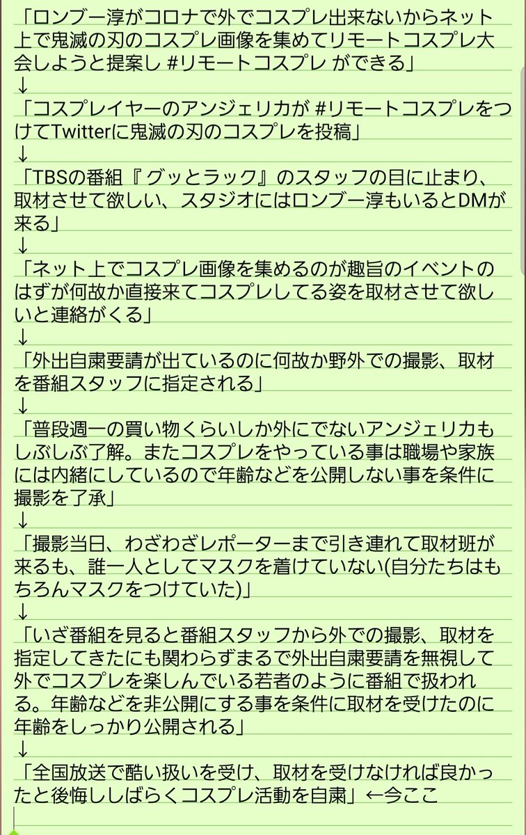 Tv番組に酷い扱いをされたコスプレイヤーが心情を吐露かつ約束破りも告発 出演者の田村淳が引用ツイートで誤解だと謝罪 本人は和解へ Togetter