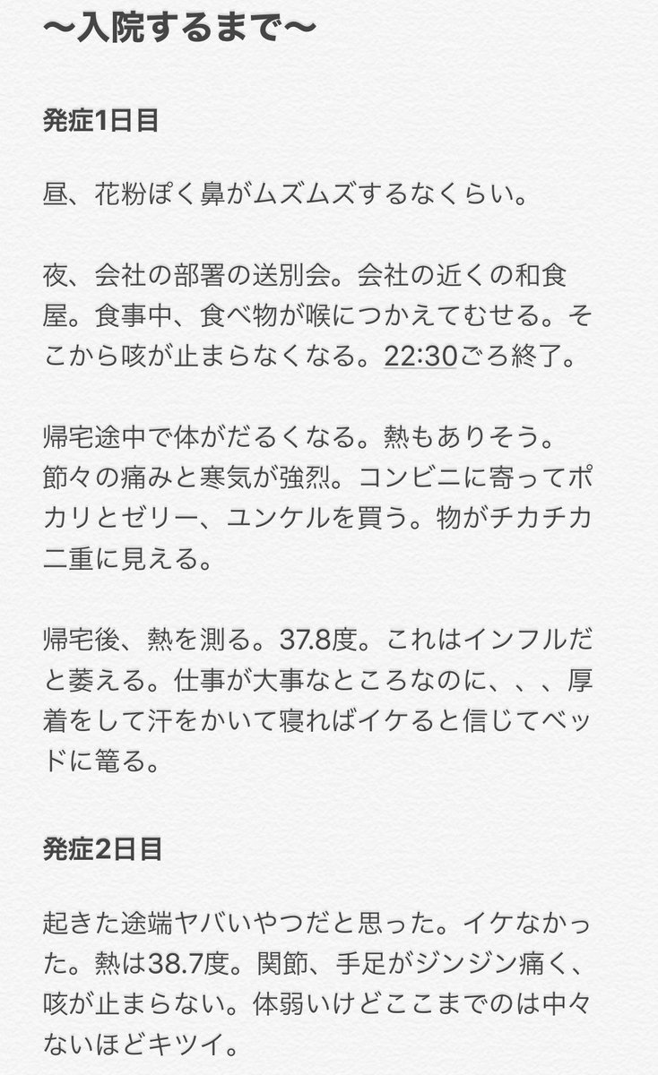 コロナ陽性で隔離入院していると言う方のリポート Togetter