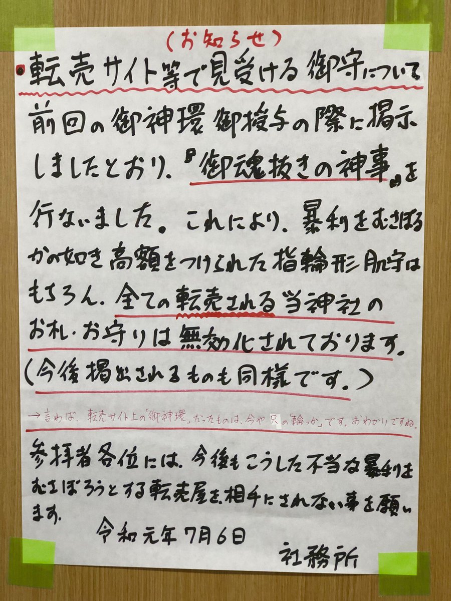 相次ぐ 御守り の転売に怒り心頭の サムハラ神社 が転売で出回っている御守りに対し 御魂抜きの神事 を実行 こんな方法があるとは Togetter