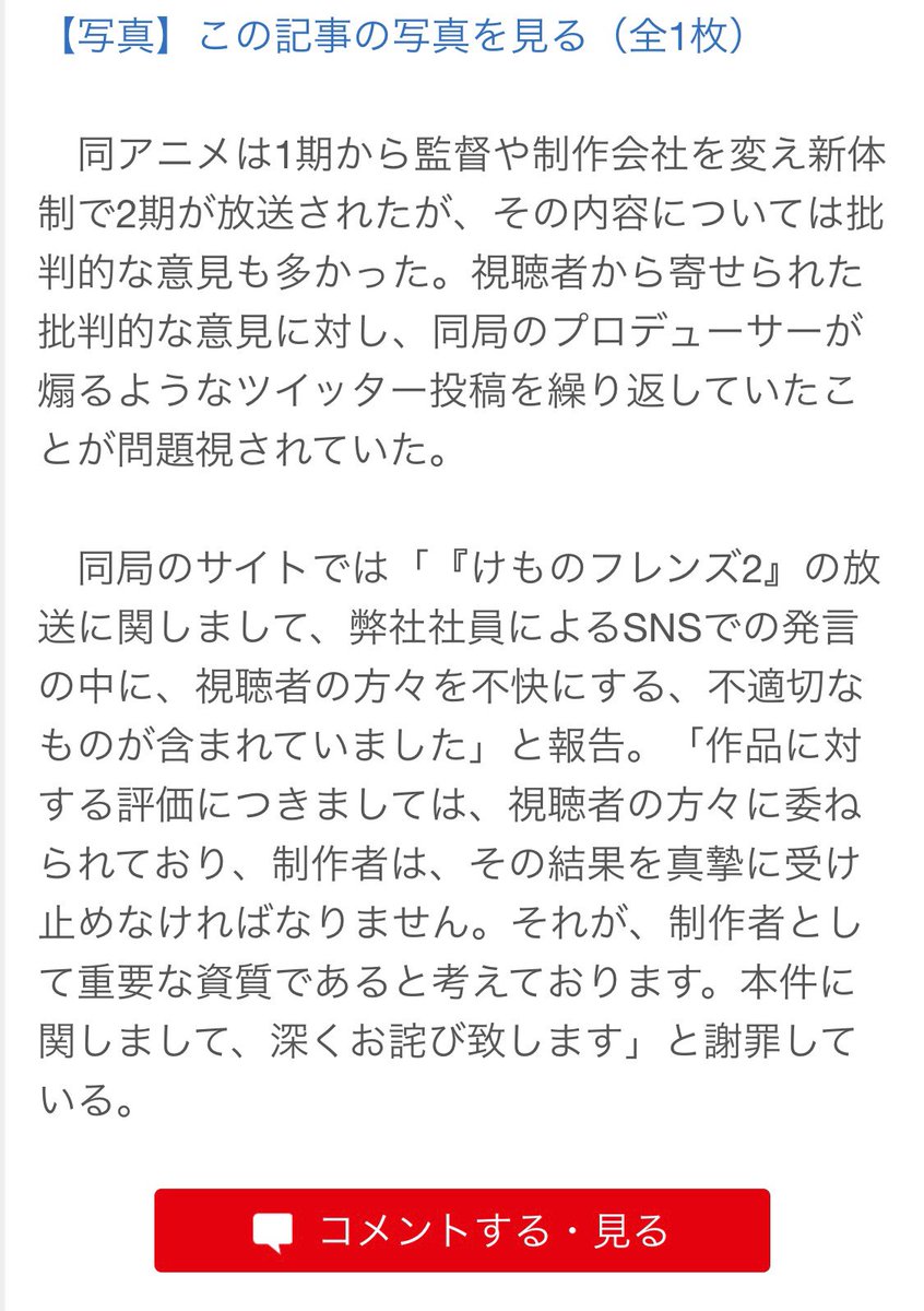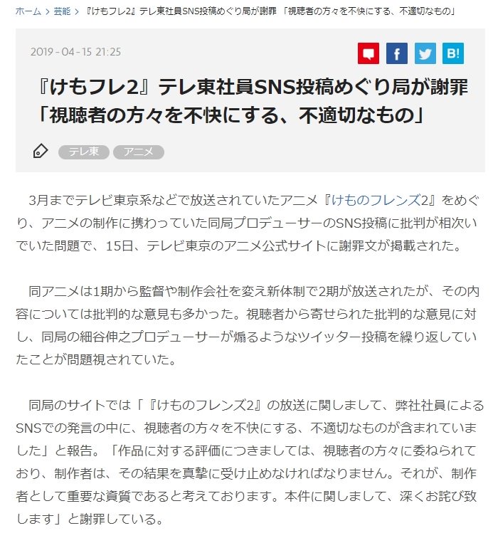 テレビ東京 けものフレンズ2 謝罪記事がyahoo ニューストップの主要ニュース欄に掲載 とけものフレンズちゃんねる オリコンとねとらぼでその後の対応が分かれる不思議な状況に Togetter