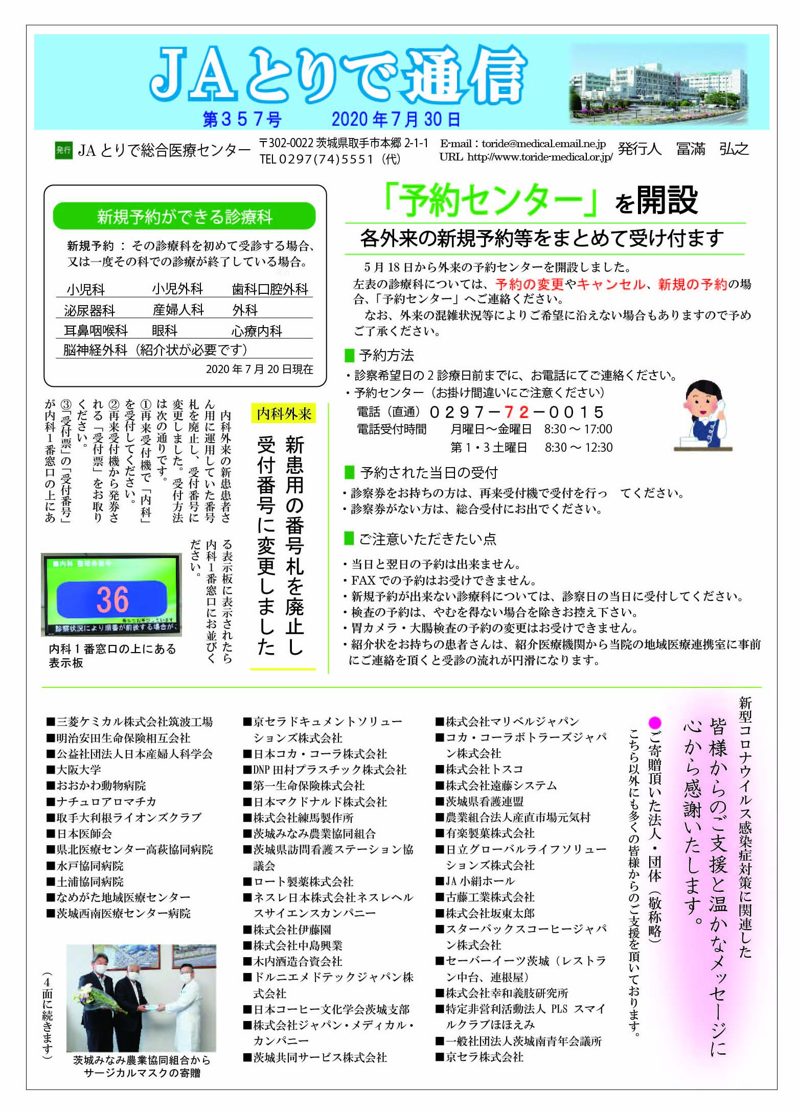 とりで通信357号をご覧ください Jaとりで総合医療センター 質の高い地域医療 救急医療を提供します