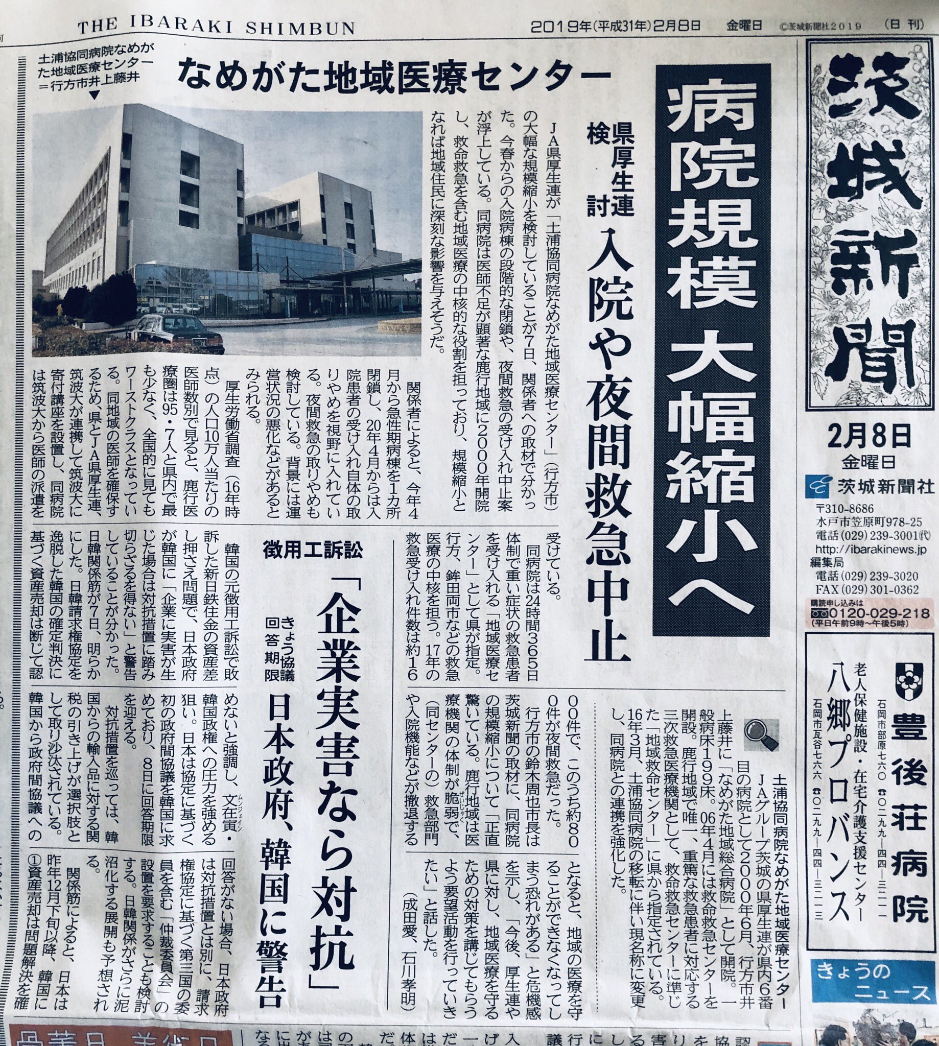 りぃ On Twitter なめがた医療病院 の 救急部門存続を要望 なめがた地域医療センター 行方市 茨城新聞 2019 2 21 茨城新聞朝刊22面より 2019 2 8 茨城新聞朝刊1面より