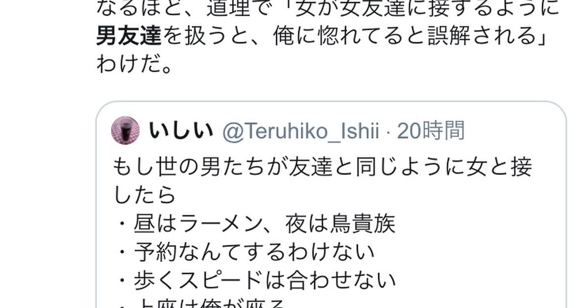 男同士の割とリアルで雑なコミュニケーションに 有り得ない と言うのって 普段から如何に気を遣われてきたかという何よりの証明ではなかろうか Togetter ニュートピ Twitterで話題のニュースをお届け