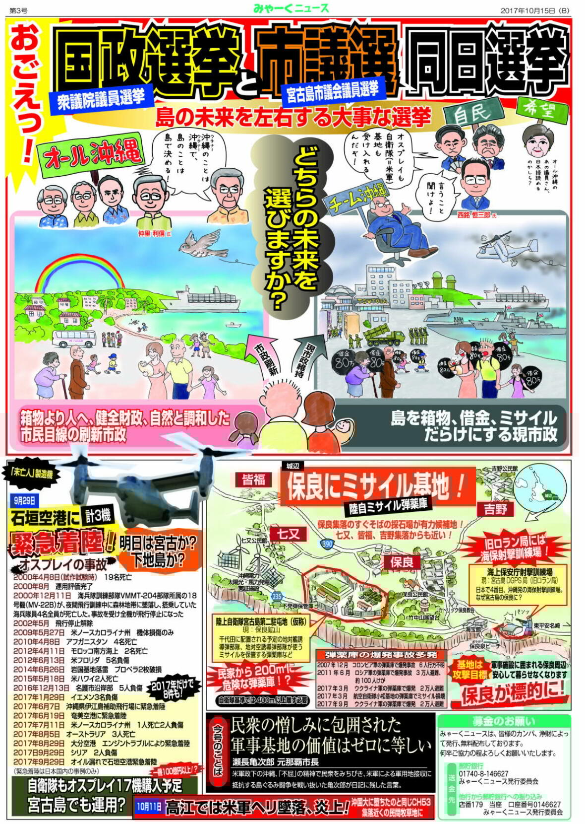 Yatasan On Twitter 宮古島市民新聞 みゃーくニュース 第3号です 宮古島市議会議員選挙 誰に投票する Https T Co 9qekukq3ni 市議選は上里樹さん 石嶺香織さんら現職と新人の 陸自配備反対 市政刷新の候補を 衆議院議員選4区は オール沖縄 のナカザト