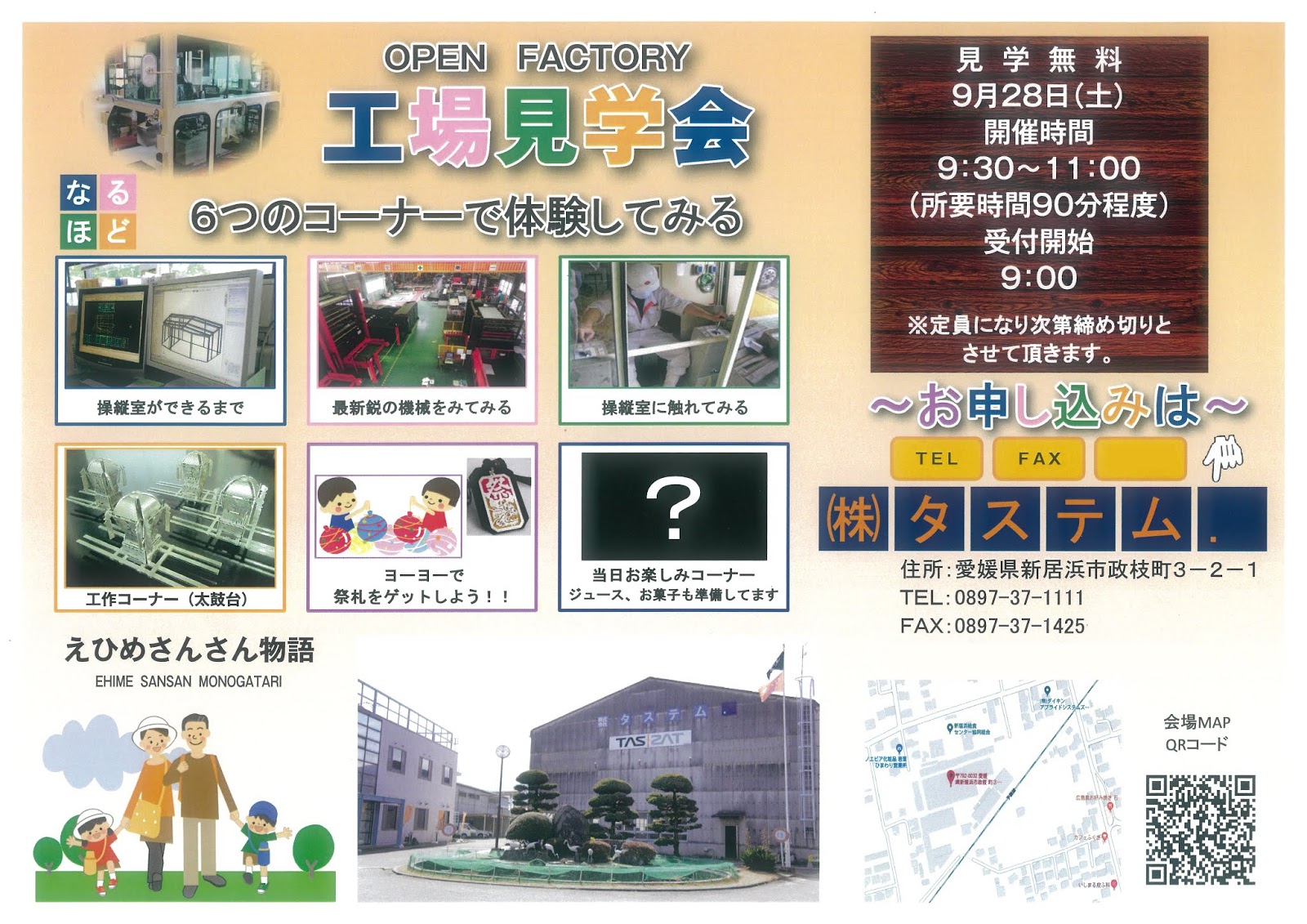 タステム News 予約受付は終了致しました オープンファクトリー 工場見学 2回目を開催します