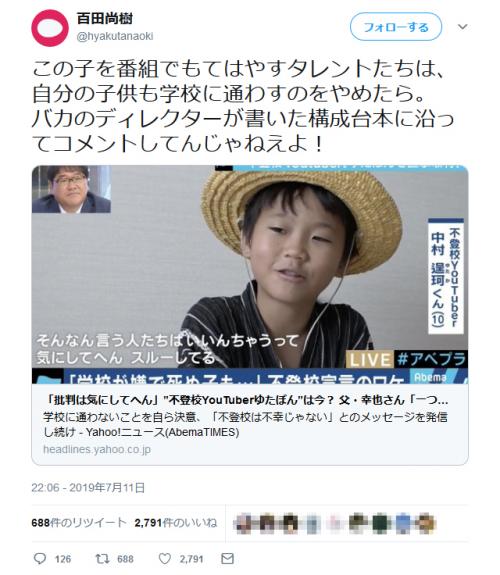 百田尚樹さん 自分が大学まで行っておいて 学校なんか行く意味ない というバカは偽善者だ 不登校youtuberゆたぼ ニコニコニュース