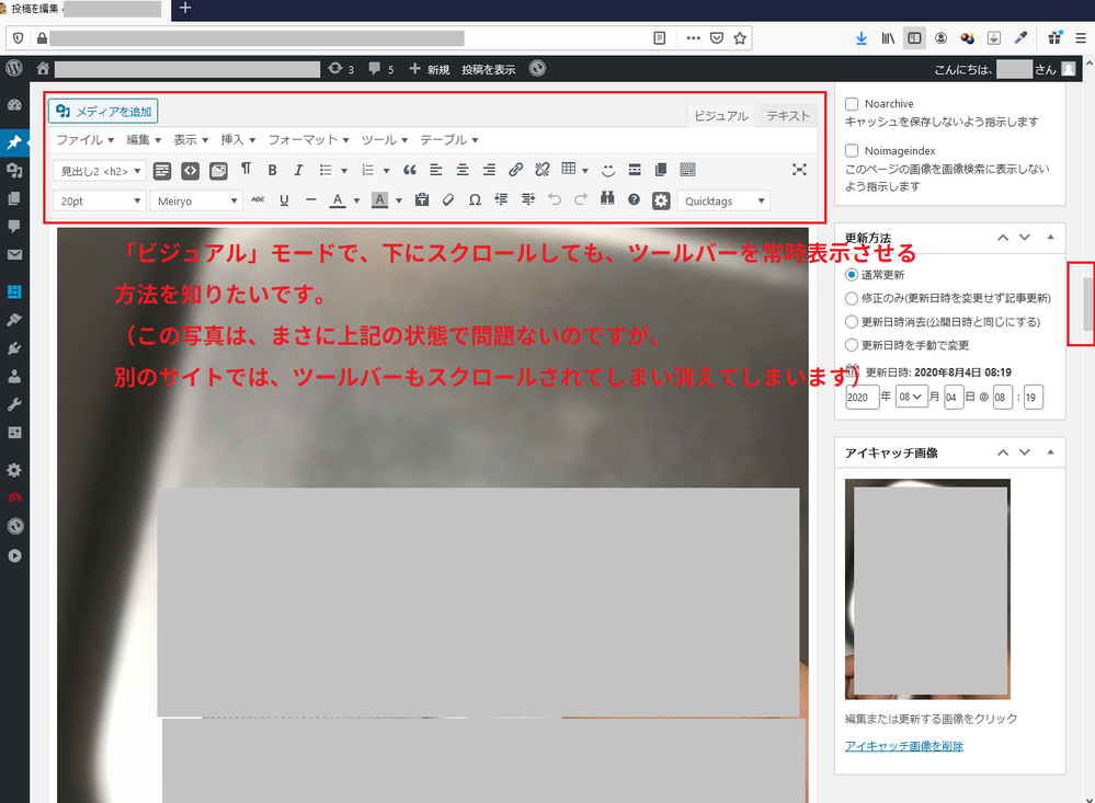 ワードプレスで記事を書く時に 下の方にスクロールしても ツールバーを Yahoo 知恵袋