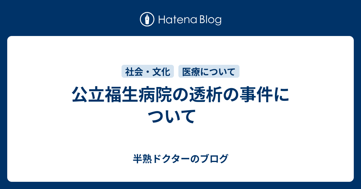 公立福生病院の透析の事件について 半熟ドクターのブログ