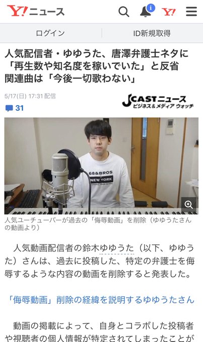 ゆゆうたがyahooニュースに 人気配信者 ゆゆうた 唐澤弁護士ネタに 再生数や知名度を稼いでいた と反省 関連曲は 今後一切歌わない ここをクリックするとブログtopに移動 アドブロ推奨 だんご