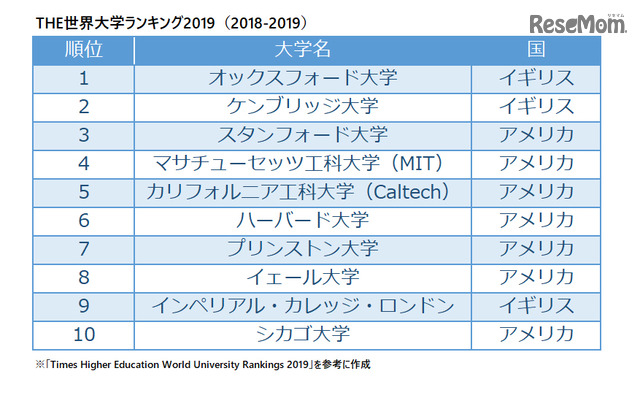 The世界大学ランキング2019 東大は42位