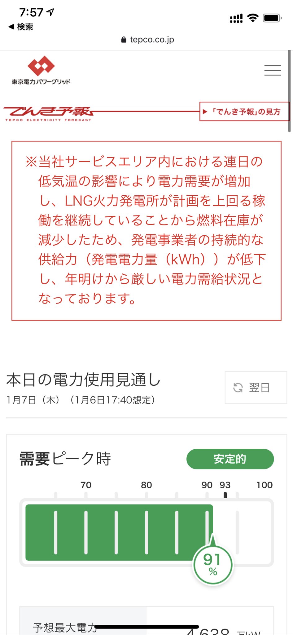 大濱﨑 卓真 On Twitter おはようございます さて 今日これからニュースになると思うのですが 実はこの大寒波やlng火力発電所 の燃料在庫減少で 電力供給事情も相当逼迫しています 需給状況悪化に伴う発電指示は 初めて発出されるもの 3連休 特に電力需要の